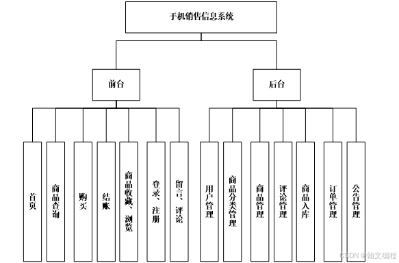 对本系统分为前台和后台,前台供普通用户使用,后台由系统管理员使用,同时普通用户也可以登录个人后台,前台功能模块和后台功能模块又可以细分为各个功能模块。如图4-1所示:
