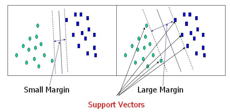 我们希望这个"雷区"(Margin)越宽越好(Large Margin),因为路越宽,咱们的模型泛化能力越强,遇到新数据时越不容易出错。