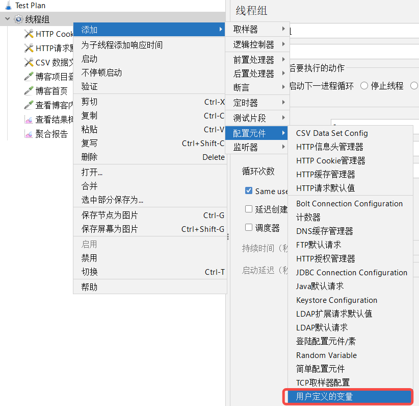 添加方式:线程组------配置元件------用户定义的变量