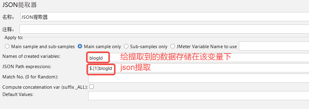 3)配置json提取的参数