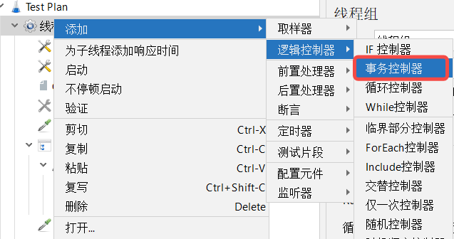 添加了事务控制器后,可以将多个接口统一放到一个事务控制器下作为一个事务