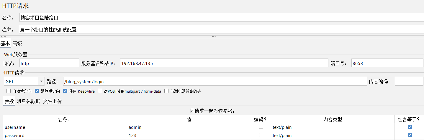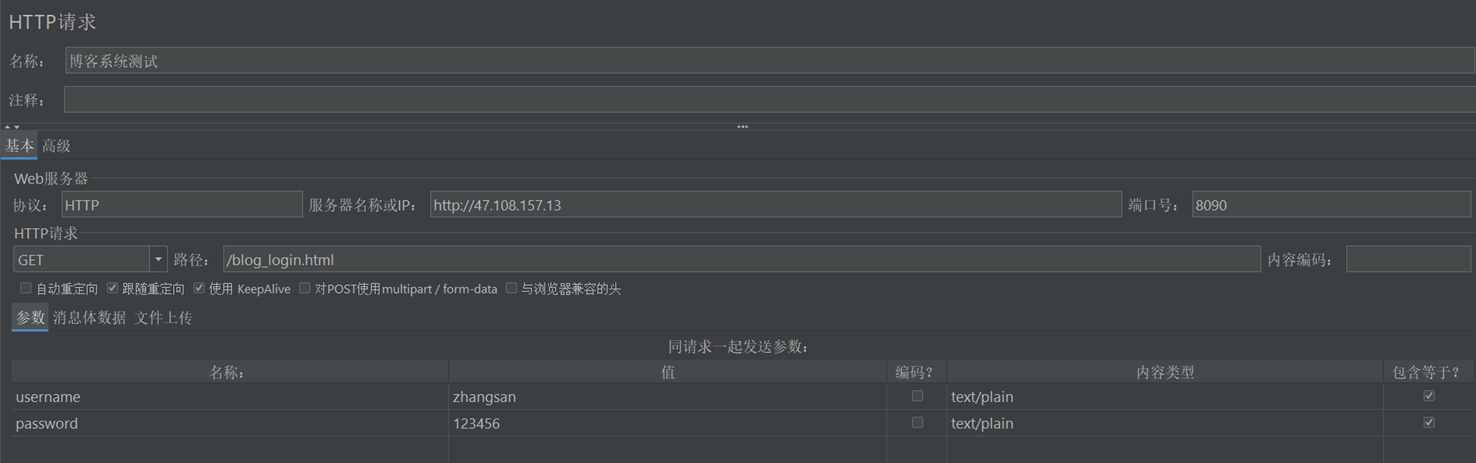 4)填写"HTTP请求"的相关请求数据