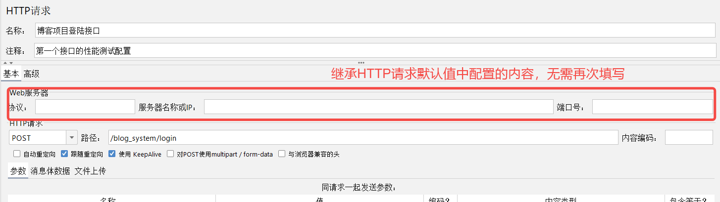 博客中涉及到的接口协议、IP、端口号全都一样,可以单独抽取出来存放在默认值中,其他接口就可以省略不写协议、IP、端口号