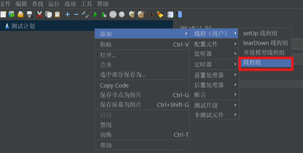 2)在"测试计划"下添加"线程组"
