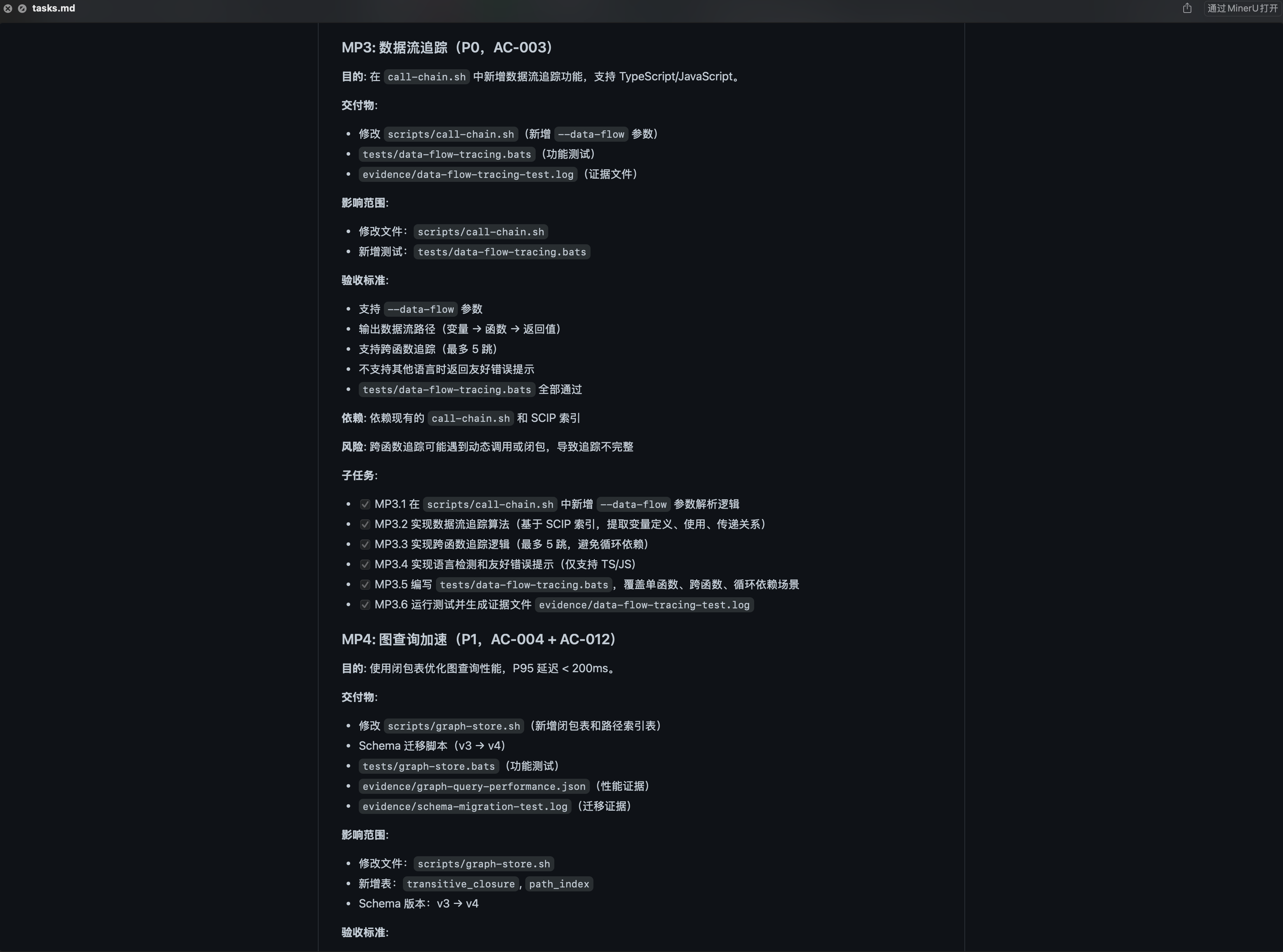 DevBooks 生成的 tasks.md 能够保持刚刚好的颗粒度 。它关注接口契约 、数据流向 和关键边界,既给出了明确的导航,又保留了实现的灵活性。