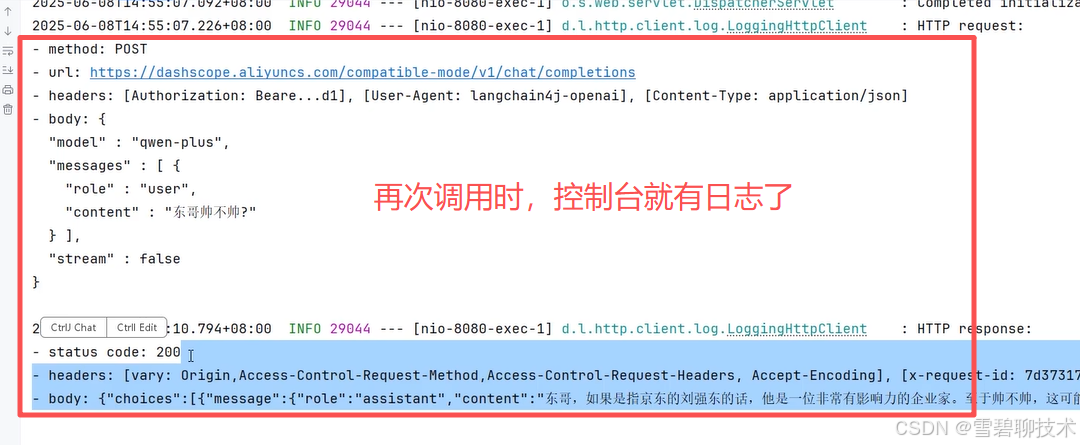 可见此时就成功通过java整合了阿里云百练的qwen-plus这款大模型,并且能成功调用。
