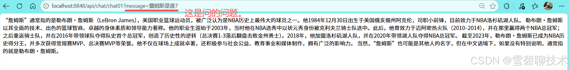 public String chat(String message){//message就是用户问的问题