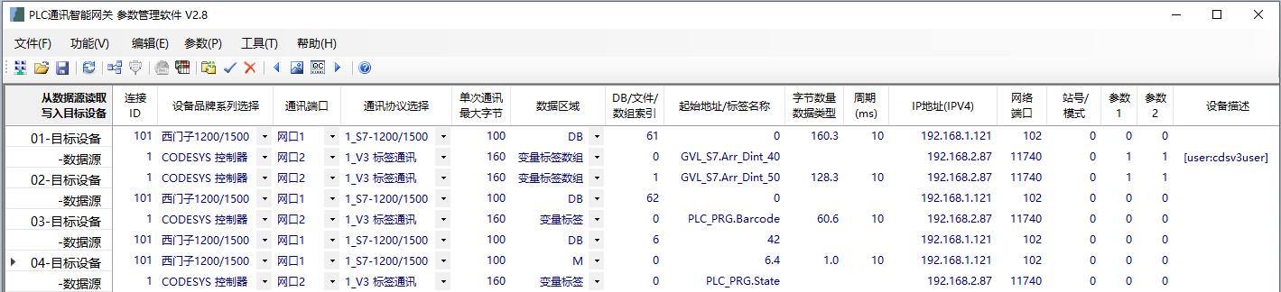 上图中的通讯配置表内有以下4个任务: