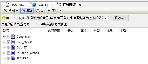 关于通讯配置表的配置可查阅智能网关用户手册(下载地址)的6.1章节,或者查阅这篇文章。如果CODESYS控制器内设置有用户名密码,在通讯配置表"设备描述"内配置,同一个"连接ID"只用配置第一个就行,格式:"[用户名:密码]"。需要注意的关键设置是在CODESYS控制器内的工程中添加"符号配置",在"Application"节点鼠标右键"添加对象",再选择"符号配置",勾选要通讯的标签文件,编译保存即可,如下图: