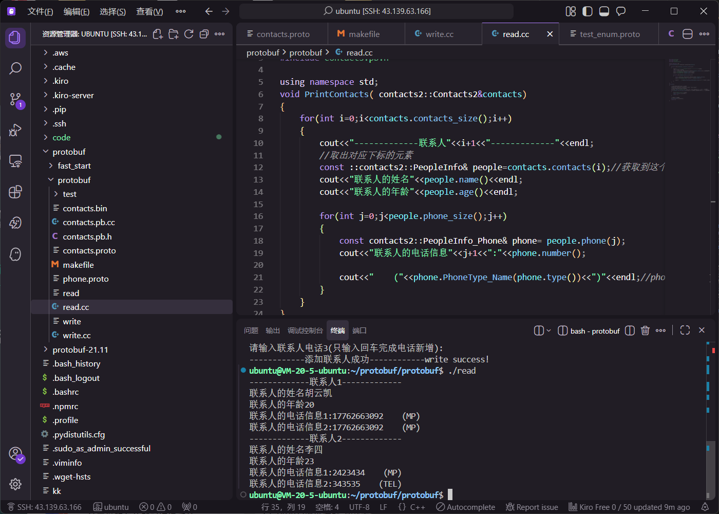 在 read.cc 中,使用 other_contact_case() 方法判断当前存储的是哪种数据,并据此进行相应的输出。该方法返回一个枚举值,对应 proto 中定义的字段。