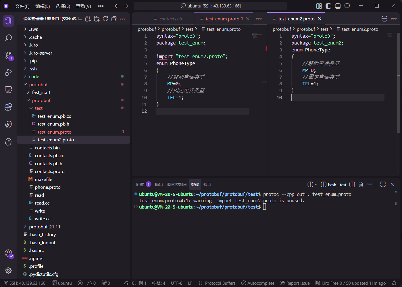 首先创建一个名为 test_enum.proto 的文件进行测试。在此阶段,若未指定包名(Package),直接定义枚举可能会引发全局命名空间的污染。