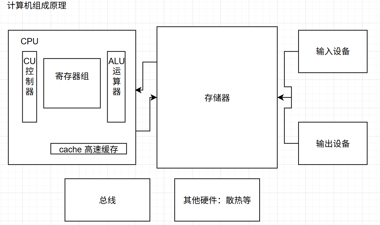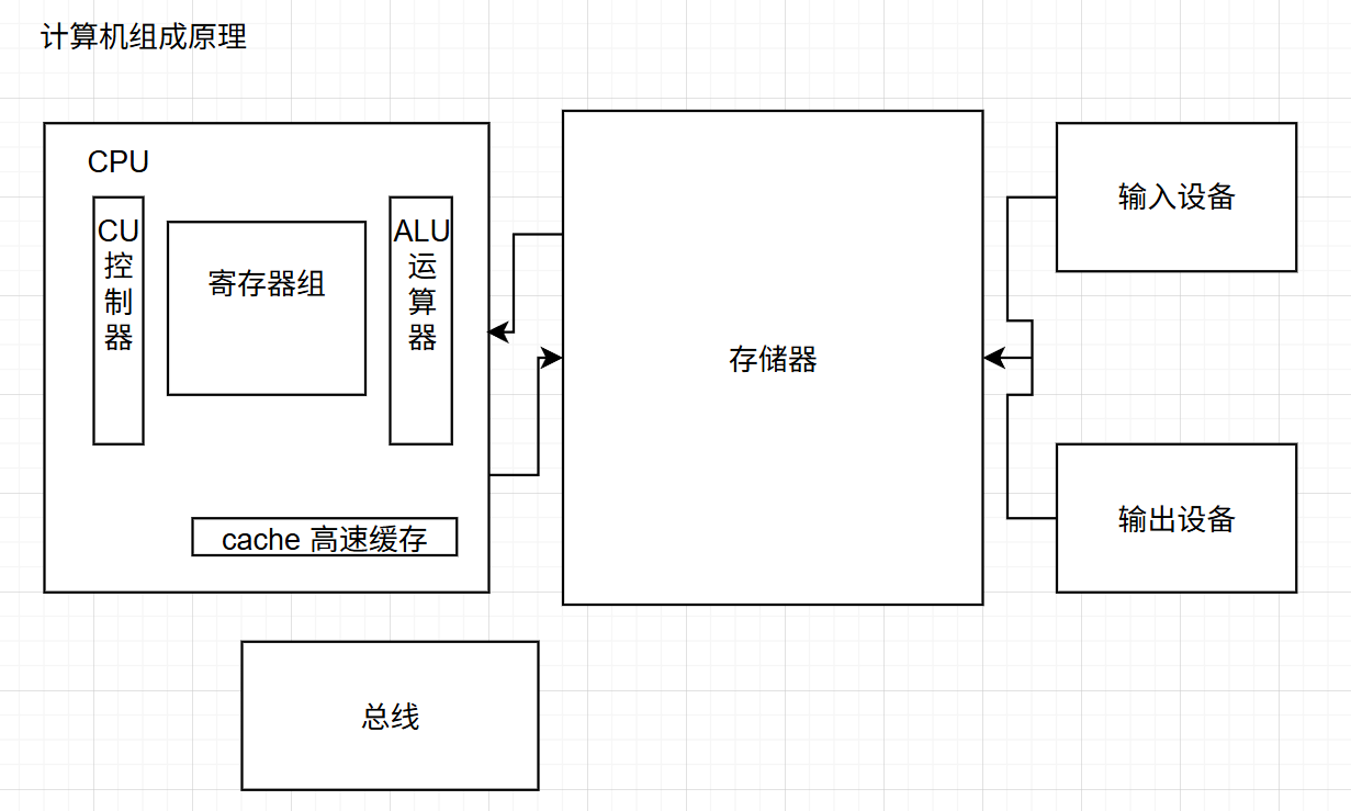 有了这些东西还是不够,还少线,键盘上敲的东西怎么放到存储器里呢,,存储器里的东西怎么送到缓存里去呢?所以还得需要一套总线 。注意下图的线没有画完,只是一个大概。
