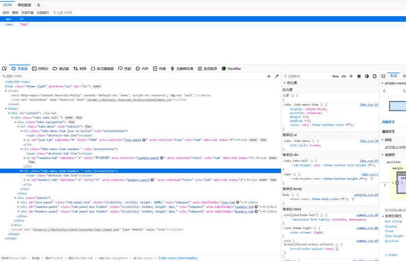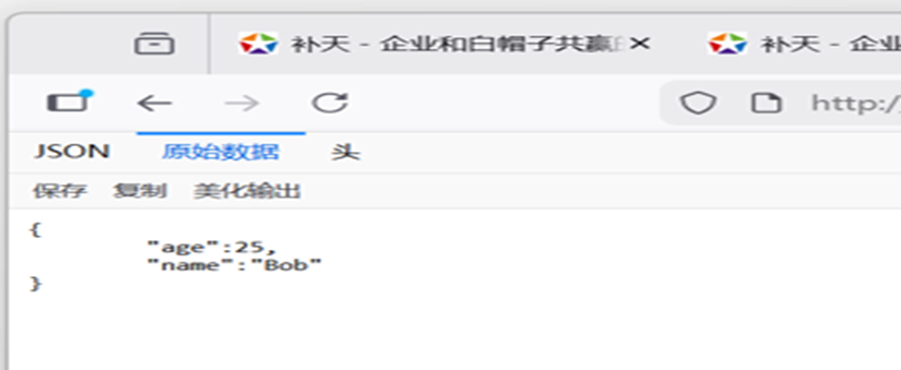 1.看到这个非敏感的JSON接口页面,无参数传入,敏感信息,只有一个普通age和name,源码,以及开发者工具,或者80端口都没有任何东西,那我们需要看看响应头或接口场景