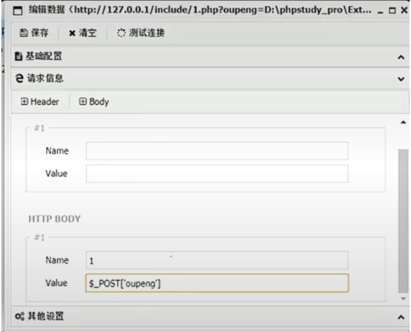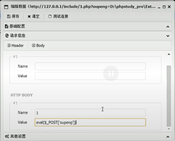 4、临时文件中的内容就是我们先前写入的eval一句话木马,我们这里需要传入一个参数给到这个文件中,然后触发这个一句话木马。