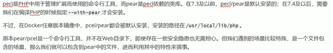 因为php的query_string会被_server('argv')去接收,而pear中获取命令行的参数也是通过_server('argv')来获取的,我们的目的是要创建一个文件,然后文件中包含了我们的payload,我们传入的参数中有我们包含的文件也就是/usr/loacal/lib/php/pearcmd.php,这个文件中有我们需要的config-create,默认创建一个文件,其接受两个参数,分别为内容和物理地址,我们要利用的函数在pear中传入,相当于给file的一个导航,让其找到那个函数。