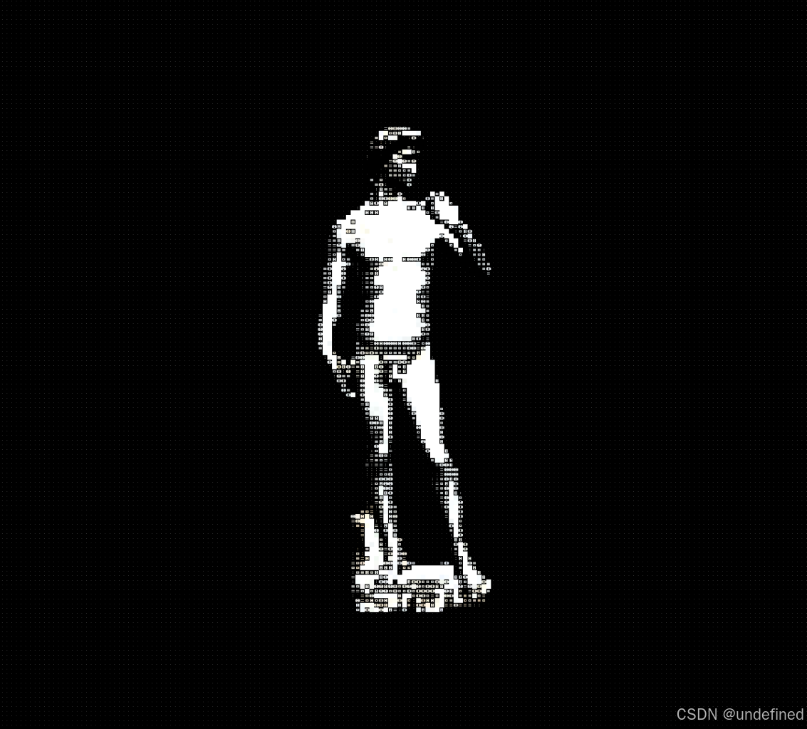 在成功实现抖动效果后,我对ASCII艺术产生了兴趣。基本思路相同(用图案表示亮度),但使用文本字符来替代像素排列。