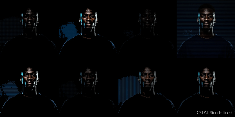 同一张图片以 8 种样式渲染:标准、密集、极简、块状、盲文、技术、矩阵和阴影线。
