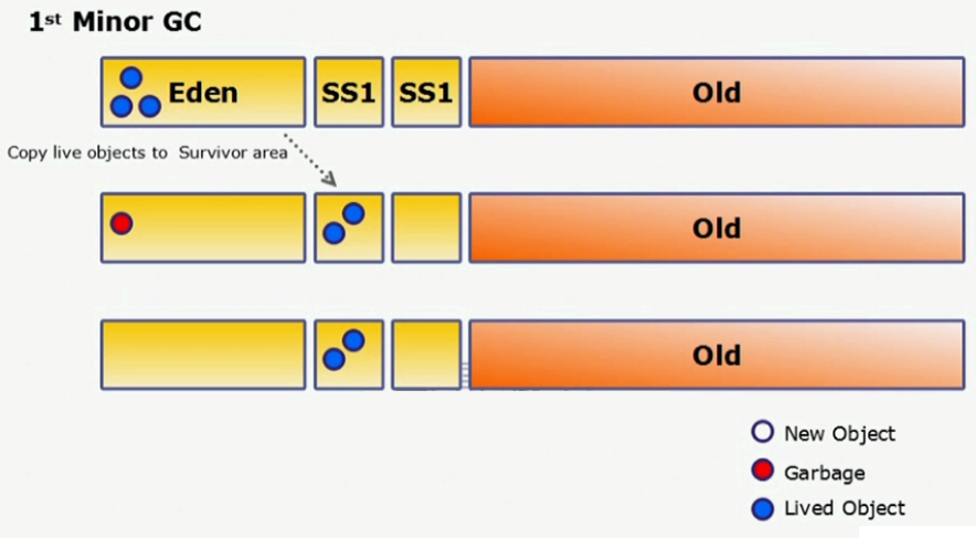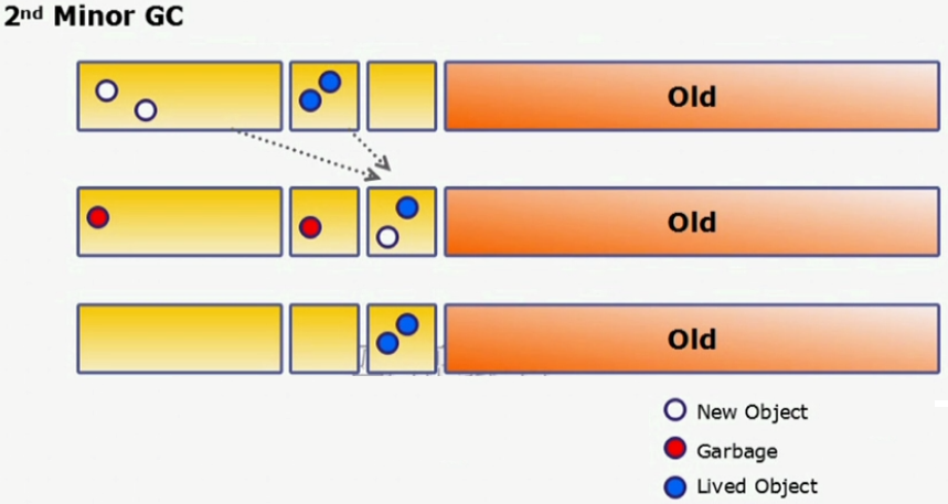 to :ss2,经过了eden或from期间还没有失效的对象,会被移到此区