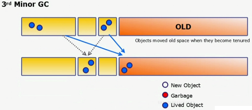 老年代(old):经过了新生区的对象,即超过一定时间还没有失效的对象区。