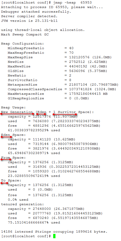 可以看到,没有对old的配置,但是old的值可以通过-Xmx、-Xms、-XX:NewSize、-XX:MaxNewSize计算就能得到。