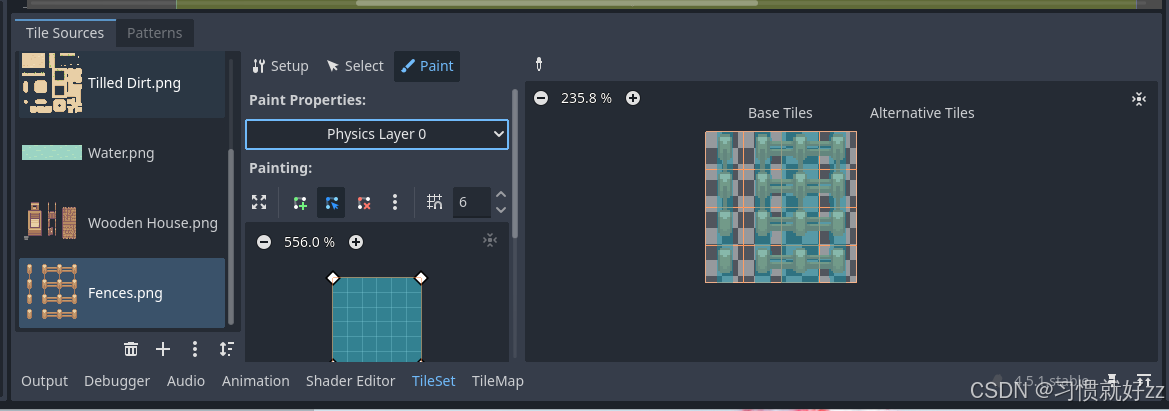 - 在瓦片集中选择"物理层"设置