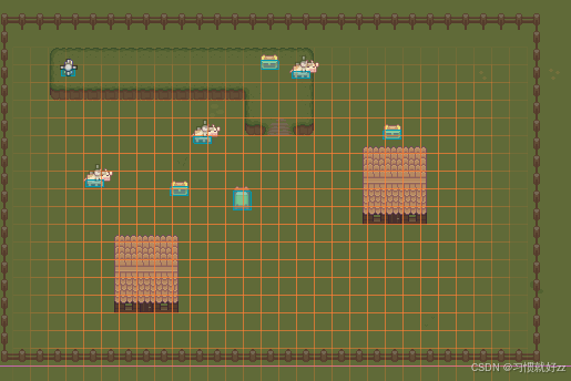 在上一篇教程中,我们已经实现了玩家的移动、动画和基础碰撞检测。现在,我们将继续丰富游戏世界,添加随机移动的奶牛NPC 、可交互的静态物体 ,以及使用多层瓦片地图构建复杂场景,最终完成一个完整的2D游戏原型。