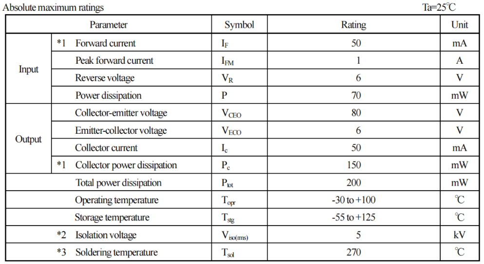 5. Ic = 50mA ------ 输出侧最大集电极电流