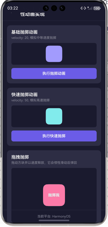 关键发现 :OpenHarmony的定时器精度限制(16ms)导致requestAnimationFrame无法达到60fps,必须调整动画逻辑。实测表明,将decelerationRate从默认0.998调整为0.985可显著改善减速体验------这是因为OpenHarmony的渲染延迟使减速过程变短,需降低衰减系数补偿。