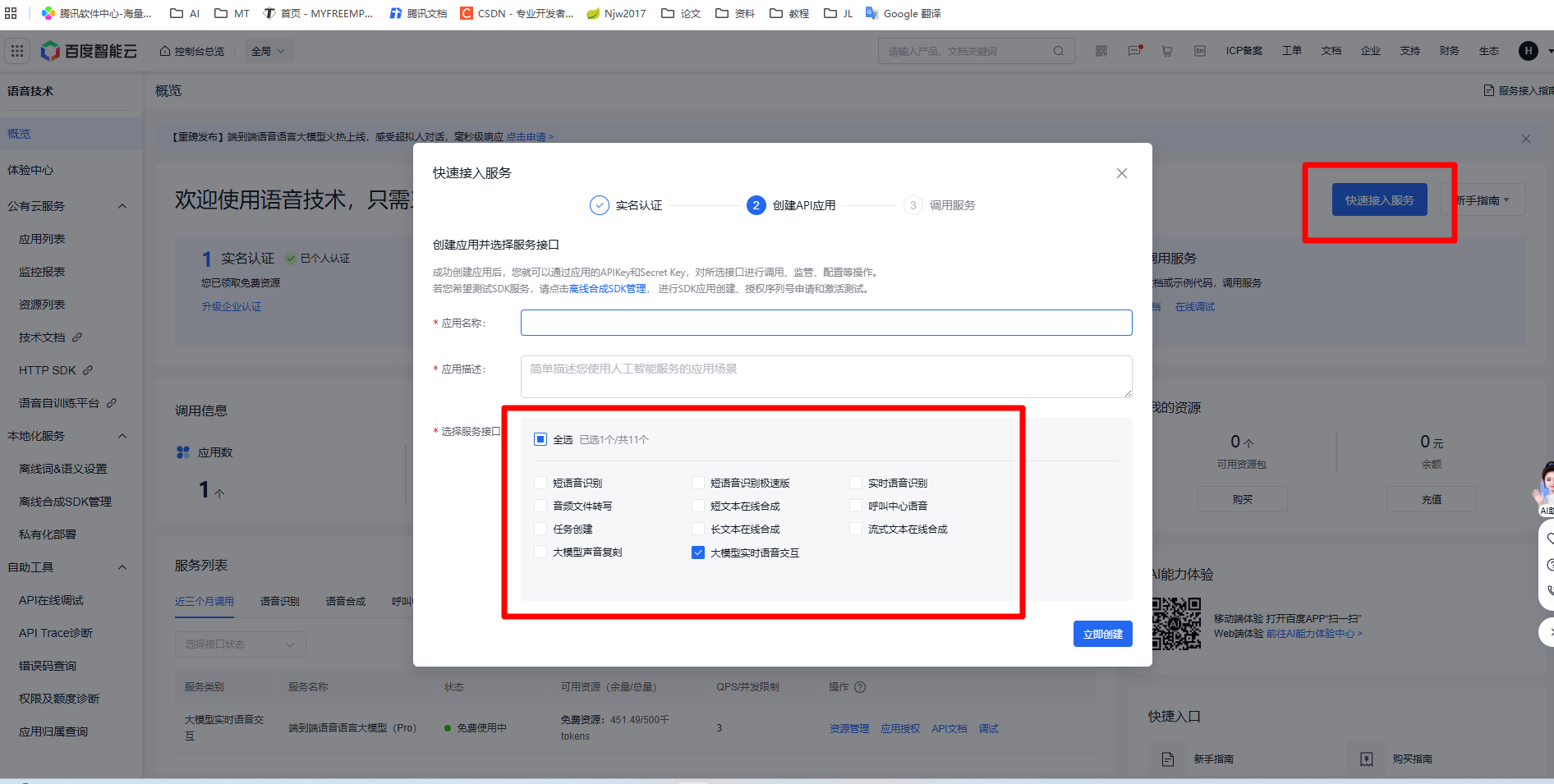 - 创建服务实例 完成实名认证后,点击"快速接入服务",选择"大模型实时语音交互",创建服务实例
