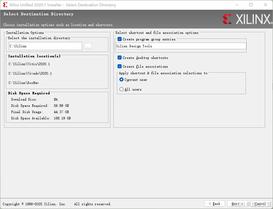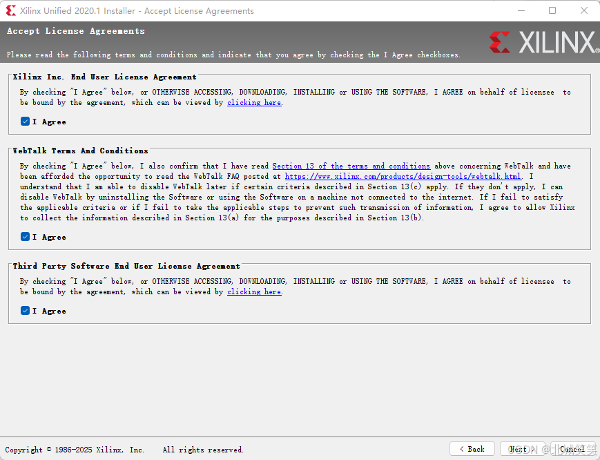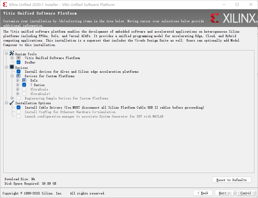 © 1986-2025 Xilinx, Inc. 保留所有权利。<[上一步] [安装] [取消]