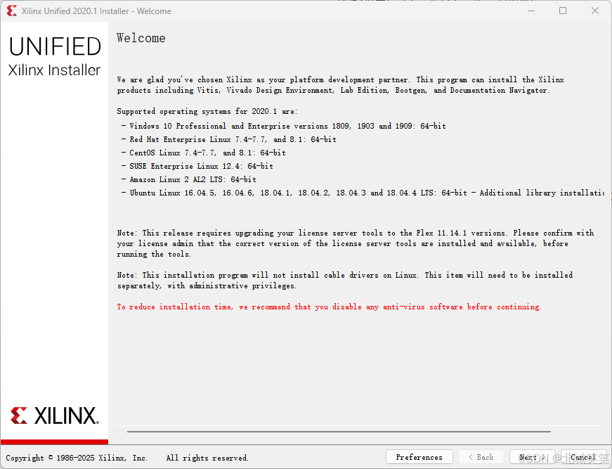 Xilinx 统一安装程序 2020.1 - 欢迎