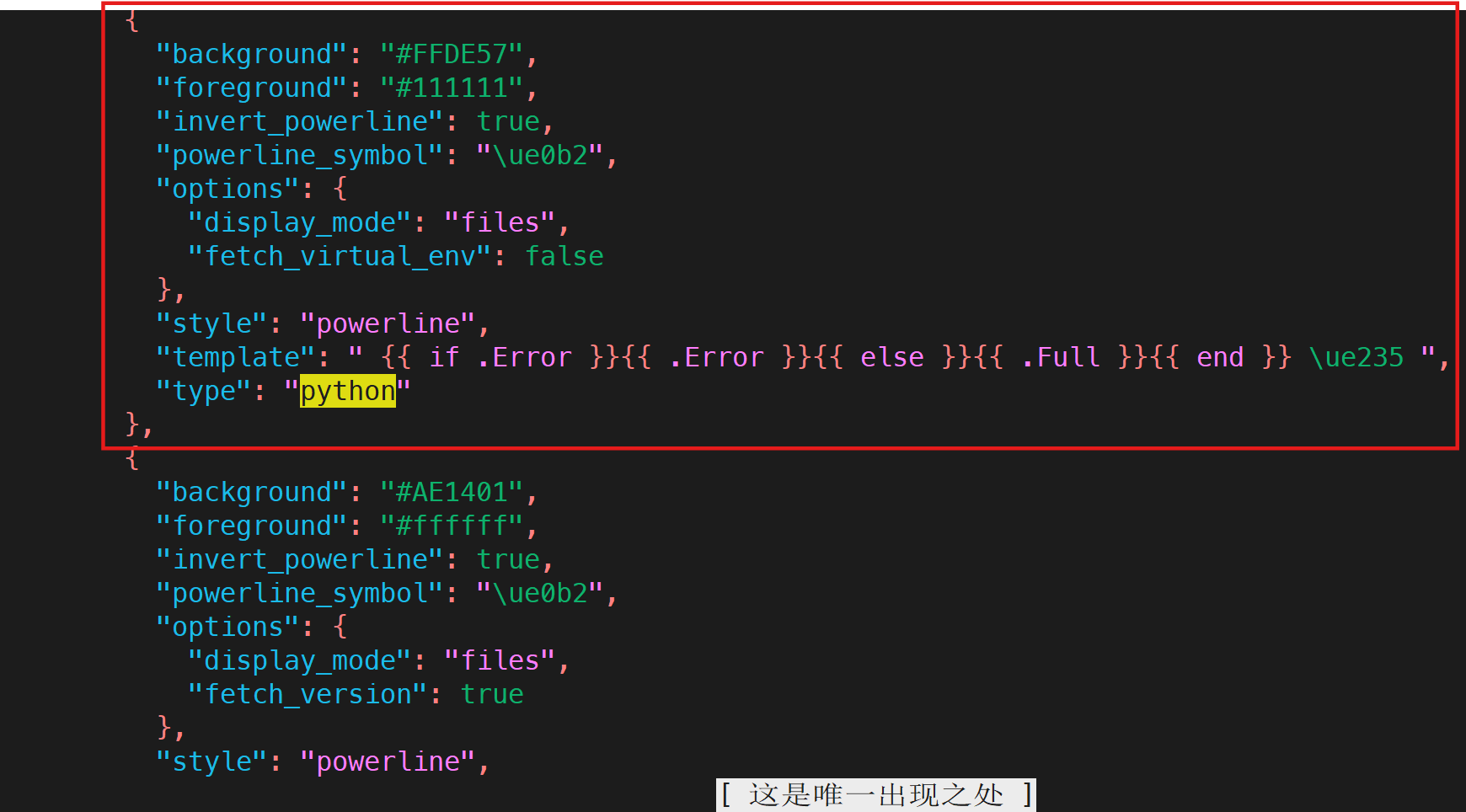 首先复制一份文件到 powerlevel10k_rainbow_with-conda.omp.json 再进行修改,避免污染原文件: