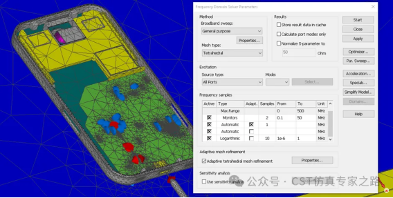 在3D仿真时,我们选用的是频域F求解器。为了获得更好的仿真精度,建议在低频段多增加一些采样点数。