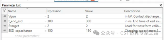 手机信号pin接触放电的测试等级是2KV,电路静电枪模型中已经设置好参数Vgun,设置为2,单位KV,其他参数保持默认设置。
