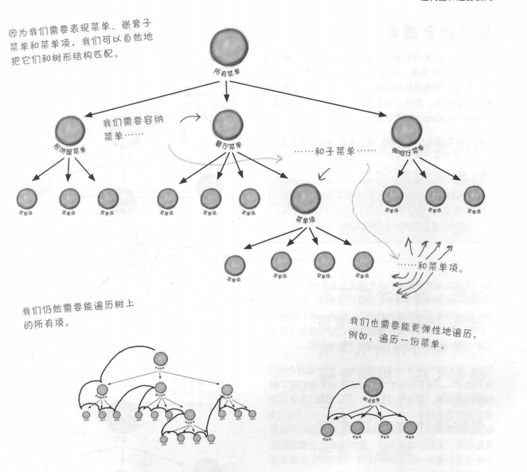 书接上回,对象村打算在Diner Menu菜单中添加一个子菜单,我们同样需要支持客户方便地遍历所有菜单。我们就需要用到组合模式。