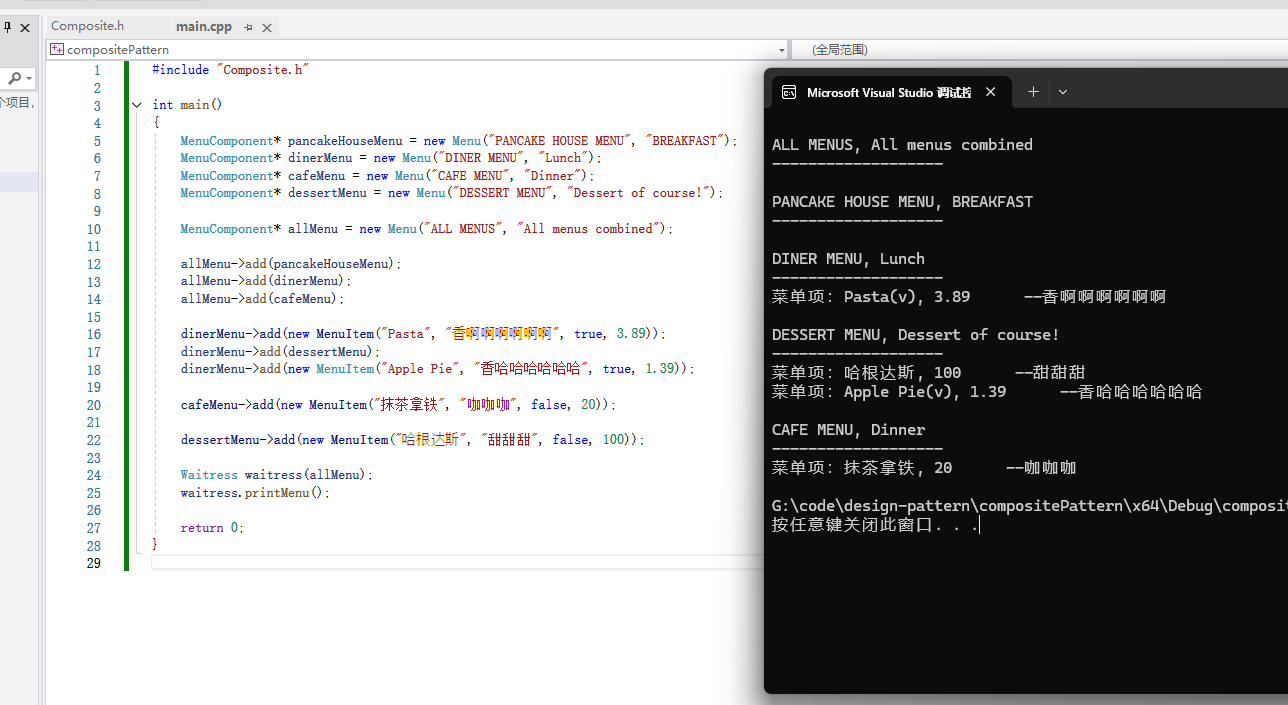 dinerMenu->add(new MenuItem("Pasta", "香啊啊啊啊啊啊", true, 3.89));