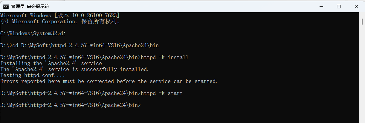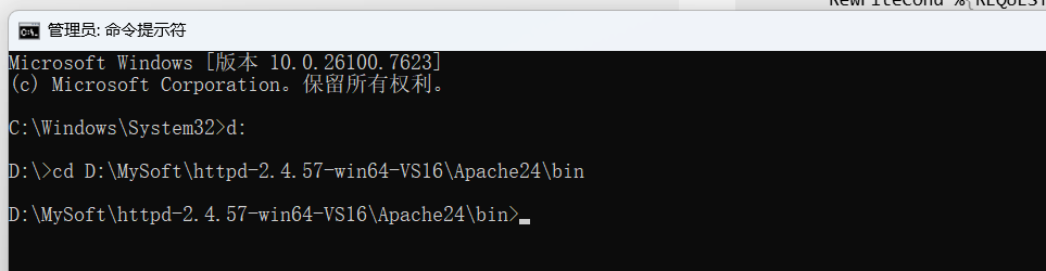 管理员打开控制台切换到Apache目录