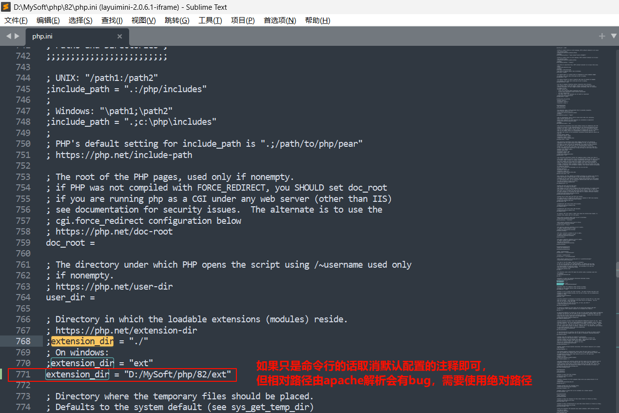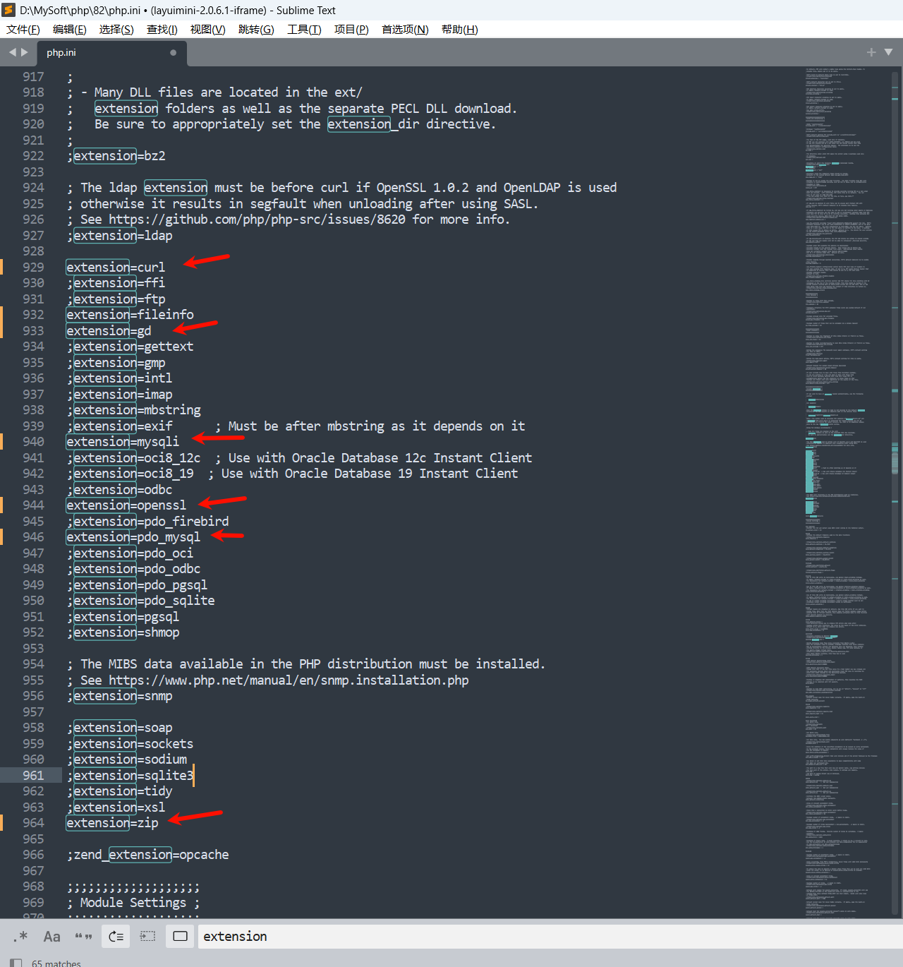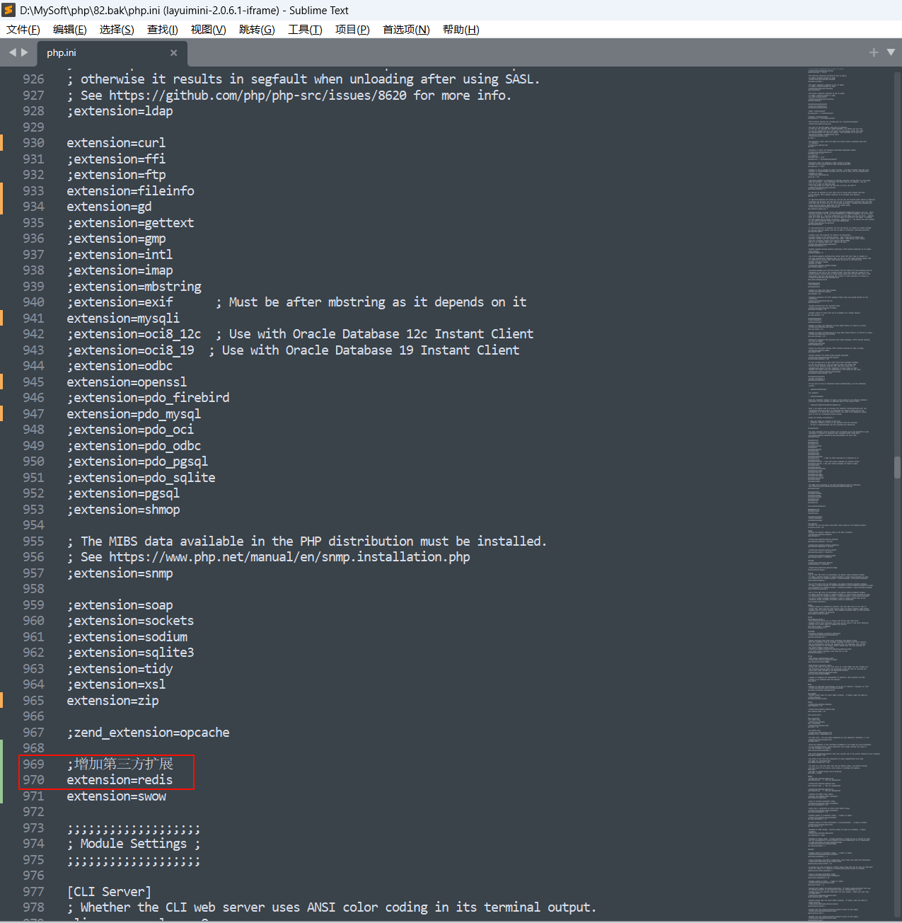 开启开发常用扩展(根据开发需求自行删掉注释符号
