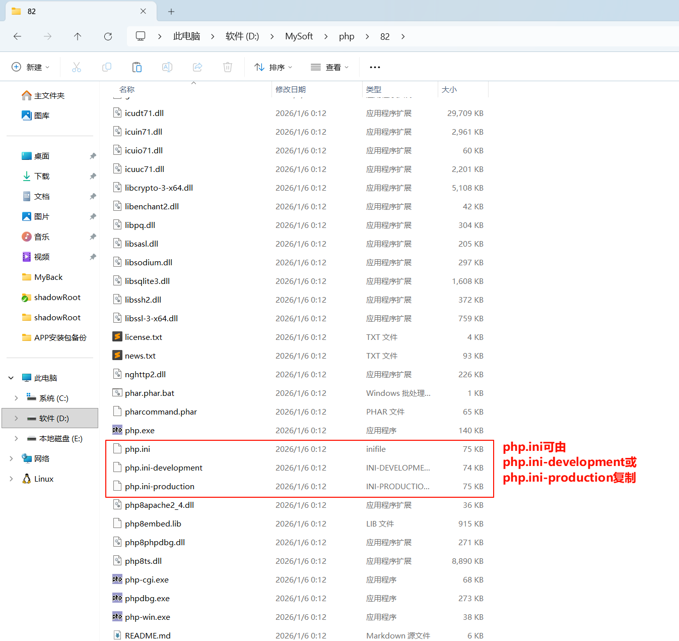 - 解压到安装目录,复制一份php.ini-production并重命名php.ini