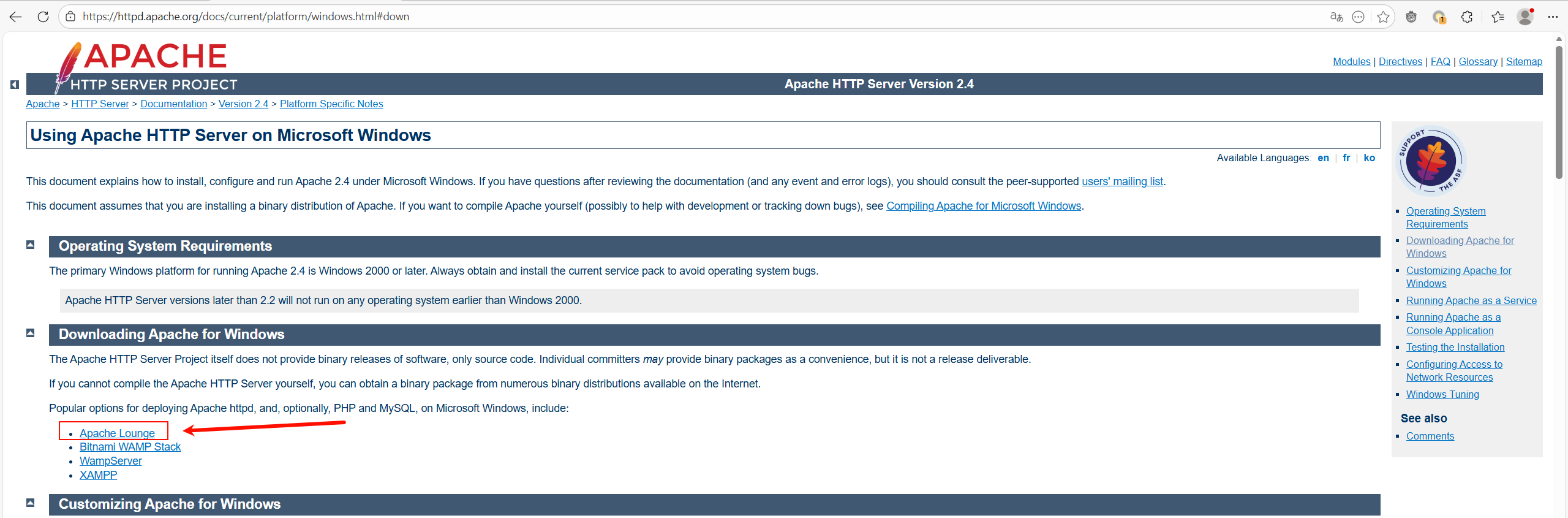 httpd -k install