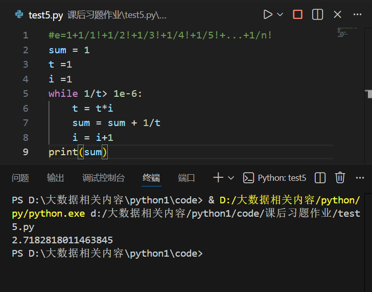 #e=1+1/1!+1/2!+1/3!+1/4!+1/5!+...+1/n!
