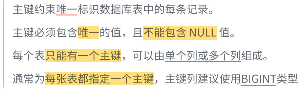 • 一个表 中只能有一个主键