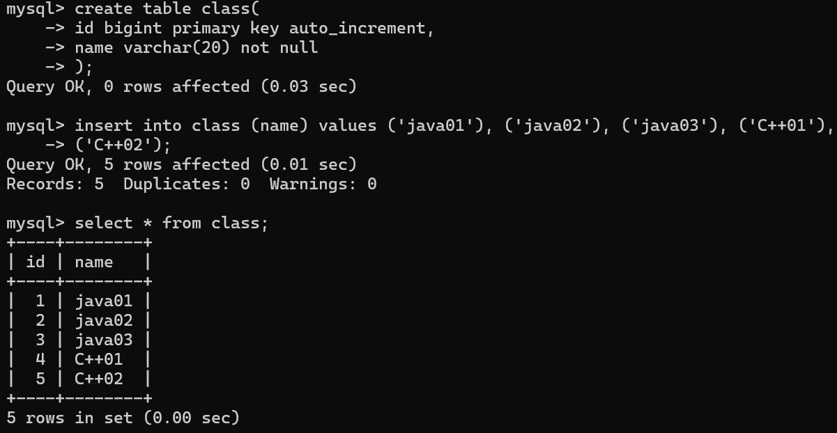 create table class (