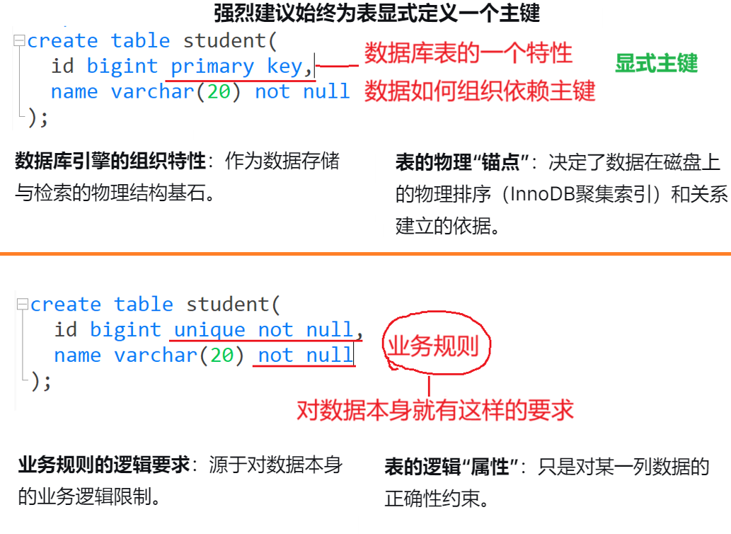 对于明确不会为空的列,建议主动添加该约束,这不仅保障 数据完整性,也能优化查询效率。