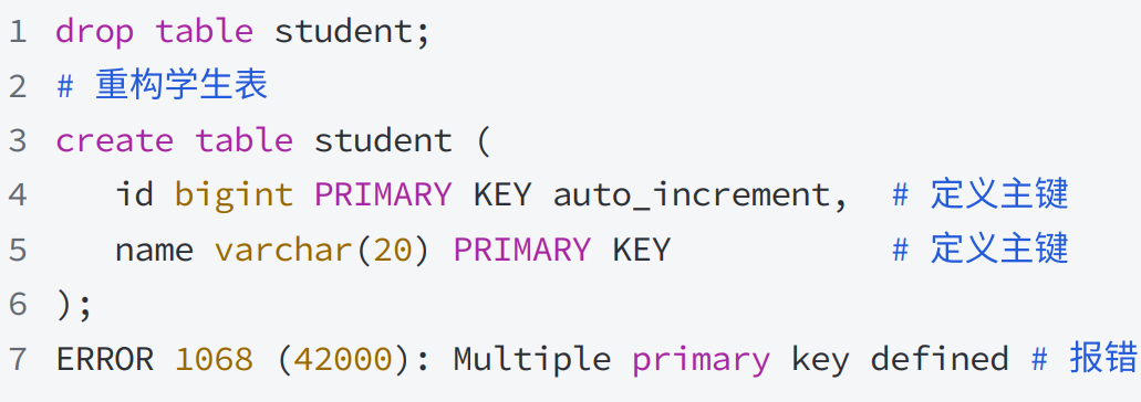 5.PRIMARY KEY 主键约束