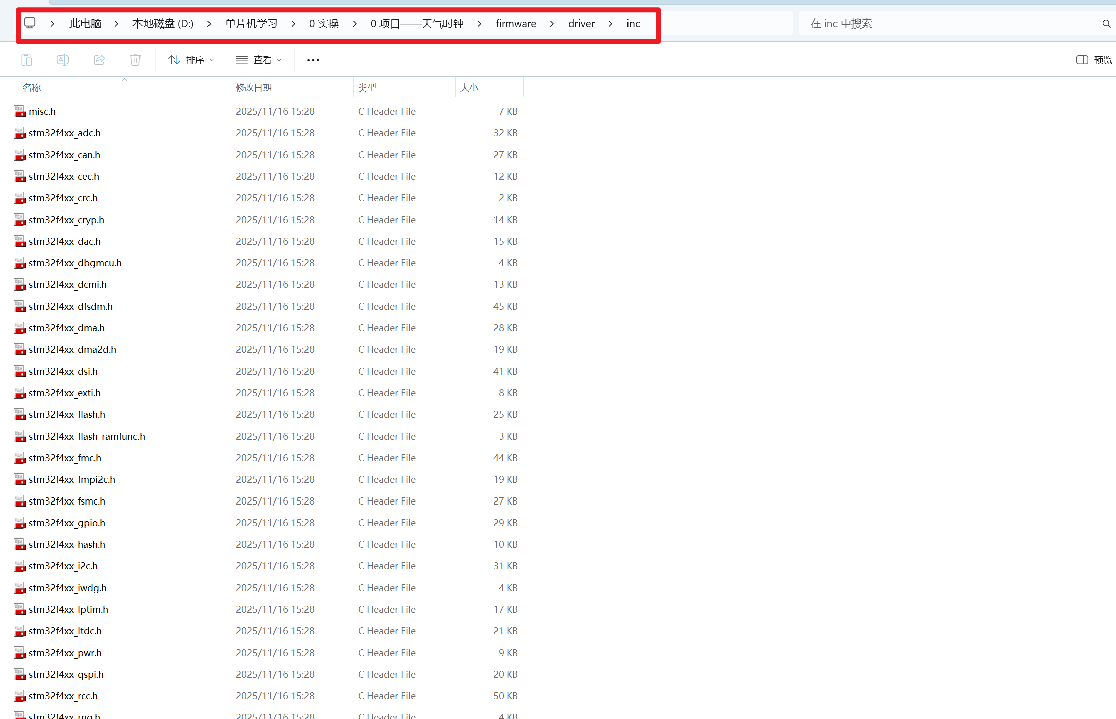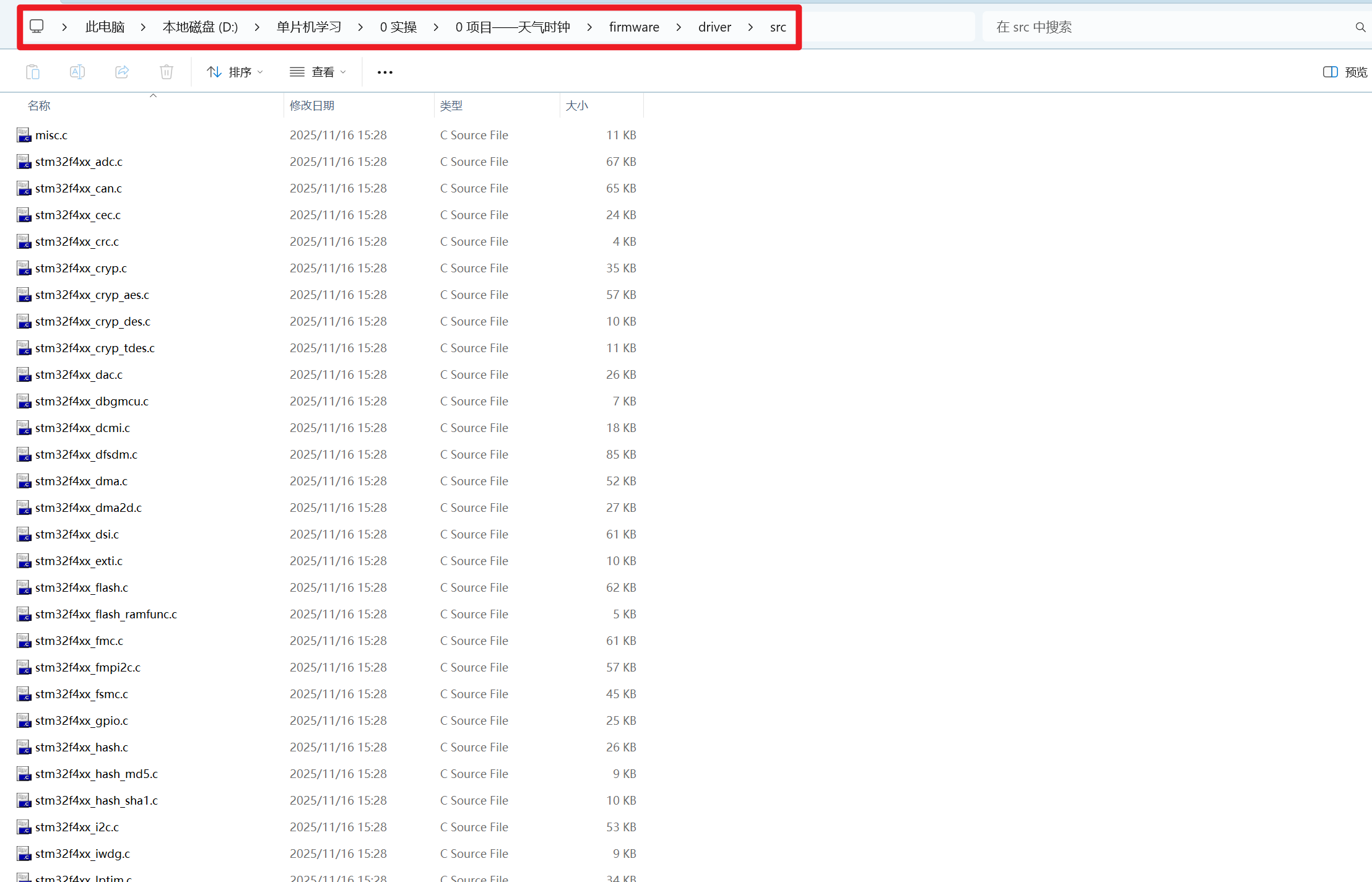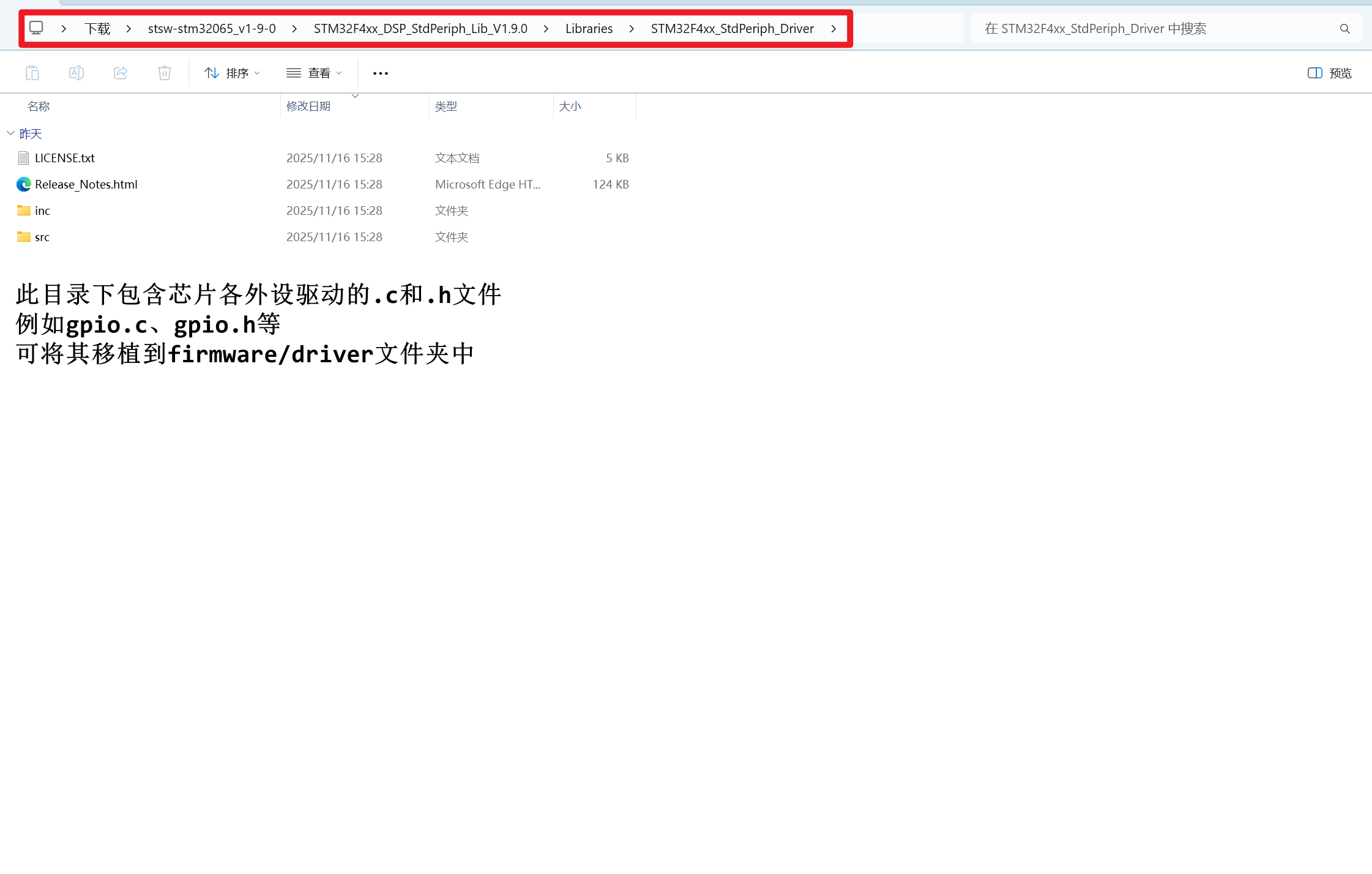 - ------driver:芯片外设驱动文件,比如stm32f4xx_gpio.c/.h文件存放在这里