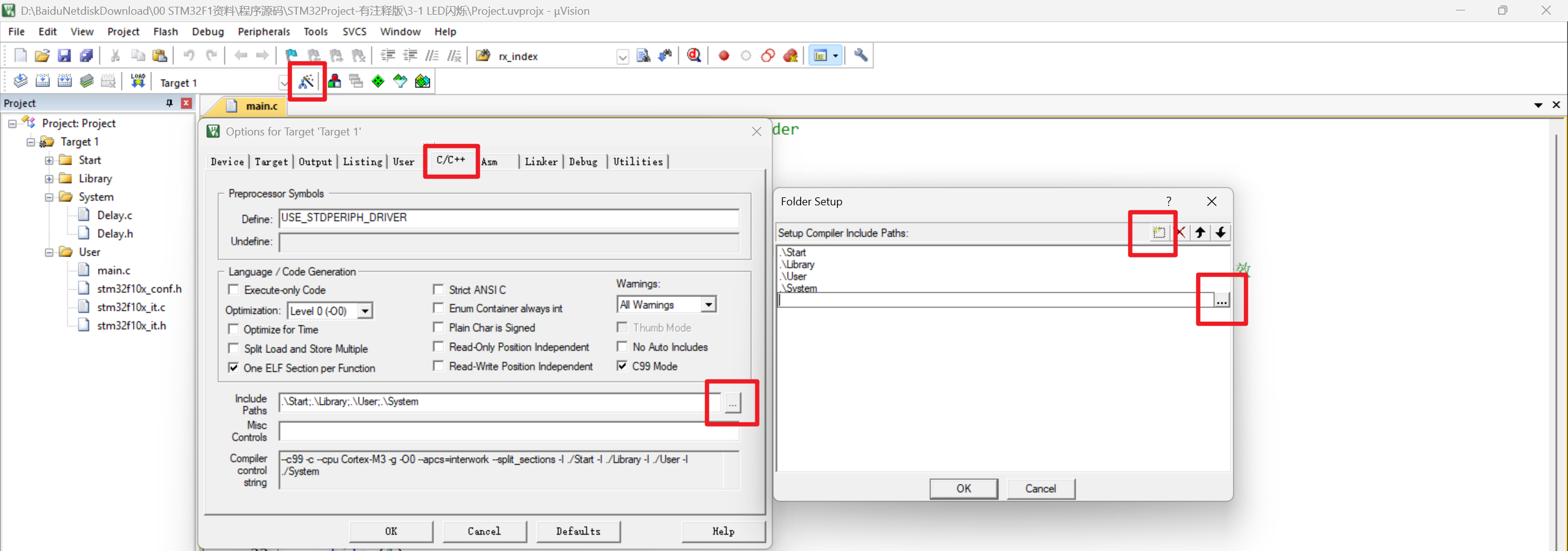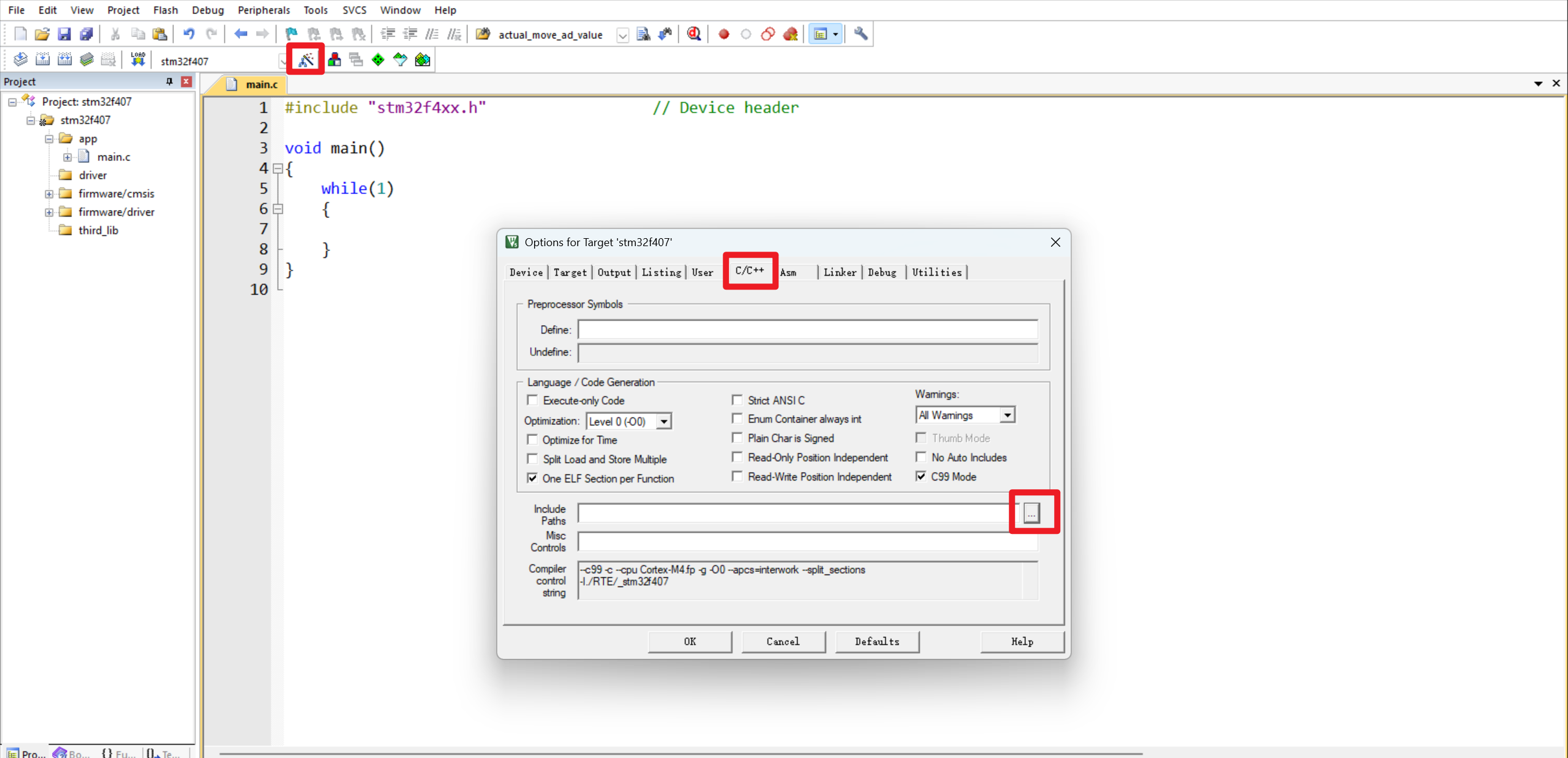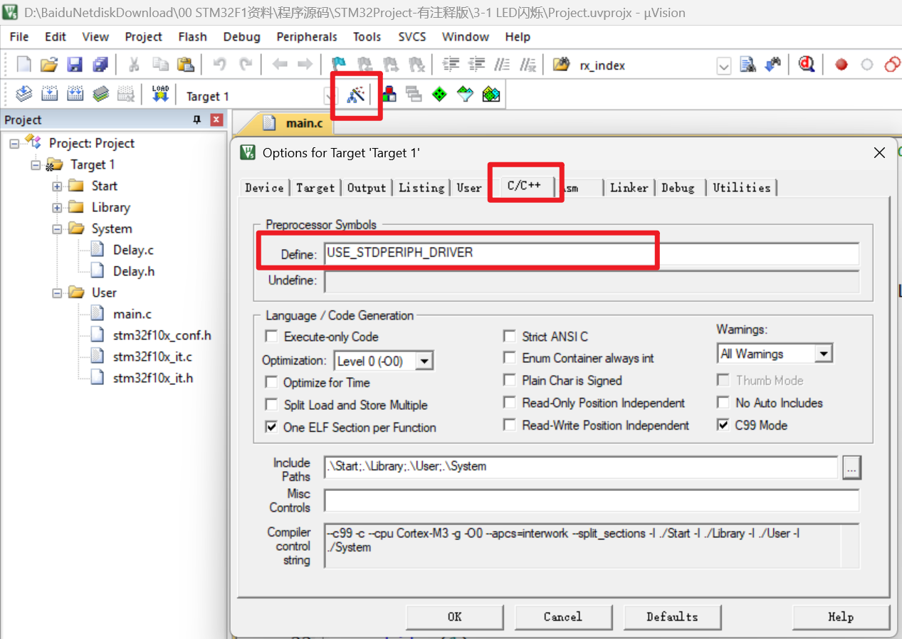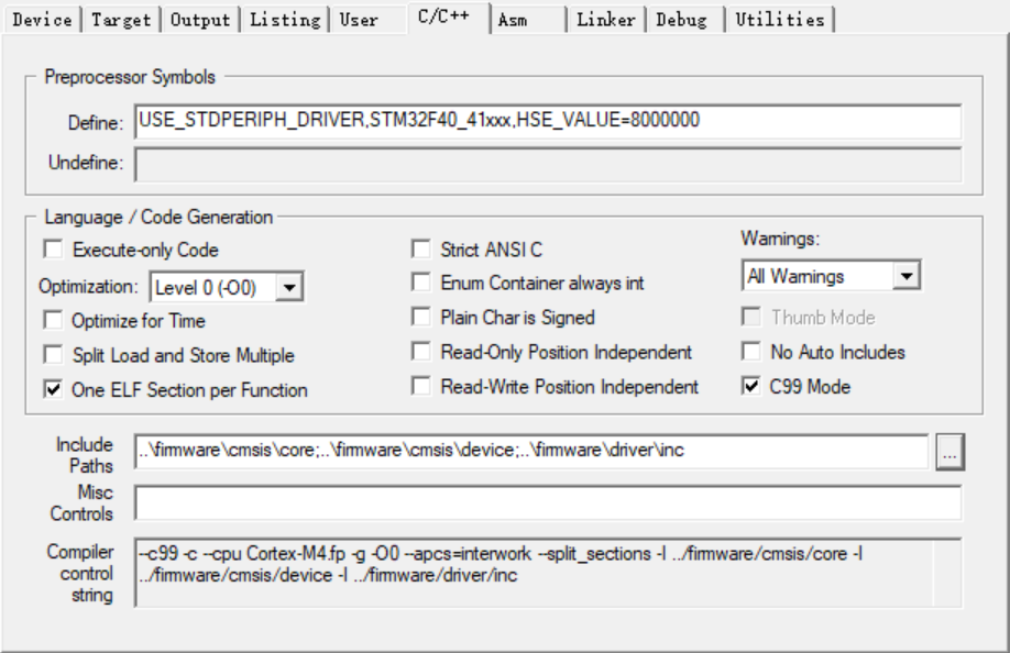 2.修改时钟(简记,目前还不清楚不修改的后果):因为官方F4例程使用的是25M的频率,国内买到的板子大多实际频率是8M,找到宏定义,在宏定义处声明时钟频率,修改文件属性后修改PLL_M的值也为8M
