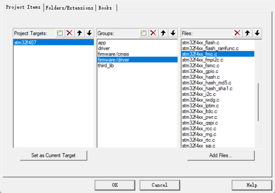 f407本身没有FMC,所以可以直接将FMC.c文件删除