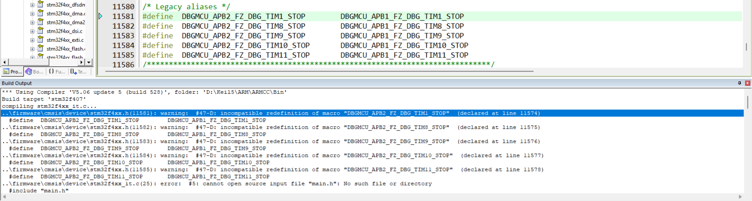 1.warning: #47-D: incompatible redefinition of macro "DBGMCU_APB2_FZ_DBG_TIM1_STOP" (declared at line 11574)