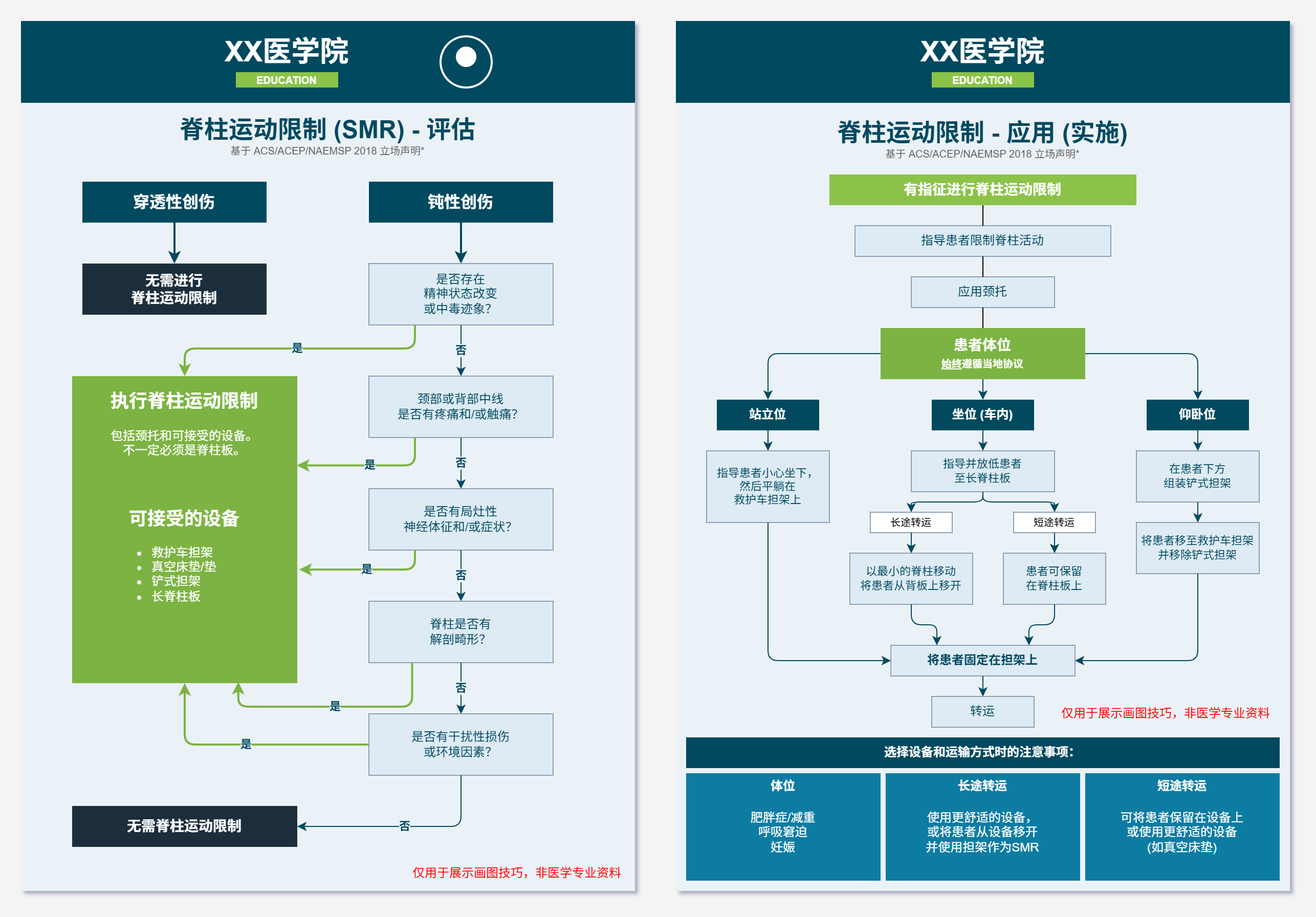 | 岗位标识 | 明确每个流程步骤的责任岗位,避免职责不清 | 在流程步骤节点旁或内部标注(如"主治医生""责任护士""转运人员") |